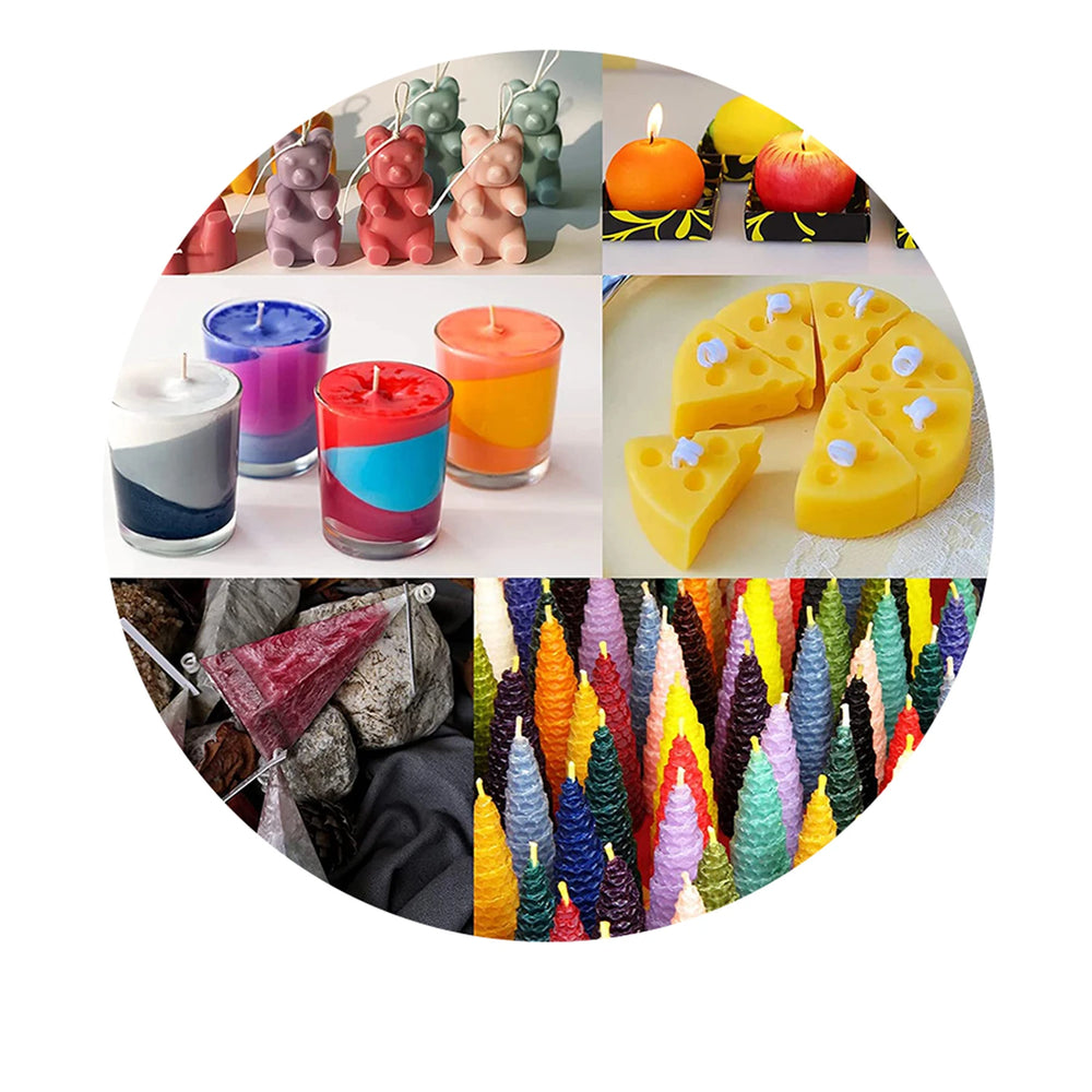 This 33-color candle wax pigment set allows you to create vibrant, beautifully colored DIY candles and handmade soaps. The liquid dye formula mixes smoothly with soy wax and other natural waxes, giving consistent, rich color results without harsh chemicals.