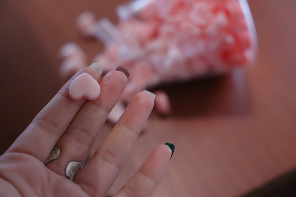This Heart in Glass Soy Candle is a charming blend of romance and cozy atmosphere. The candle is poured into a clear glass cup and decorated with delicate heart-shaped wax details, creating a beautiful Valentine-inspired look for any space.